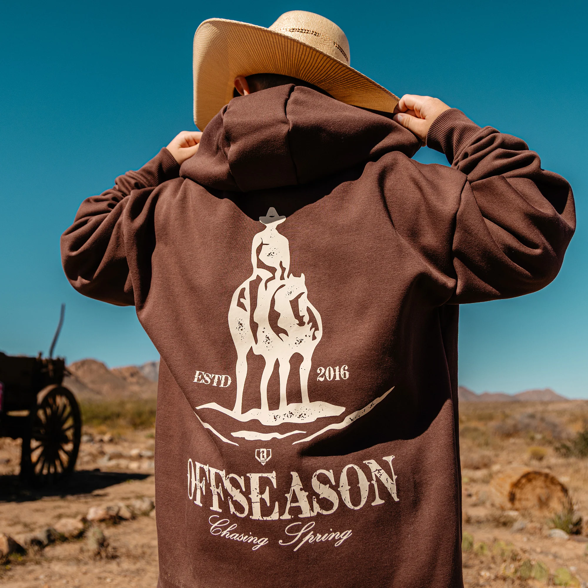 The BL101 Bat and Bridle Hoodie is where the diamond meets the ranch. Cowboy on horseback graphic on the back with "Offseason" across the bottom. Built for the grind between seasons, whether you're at the cage, in the weight room, or just keeping that baseball mentality alive year-round.