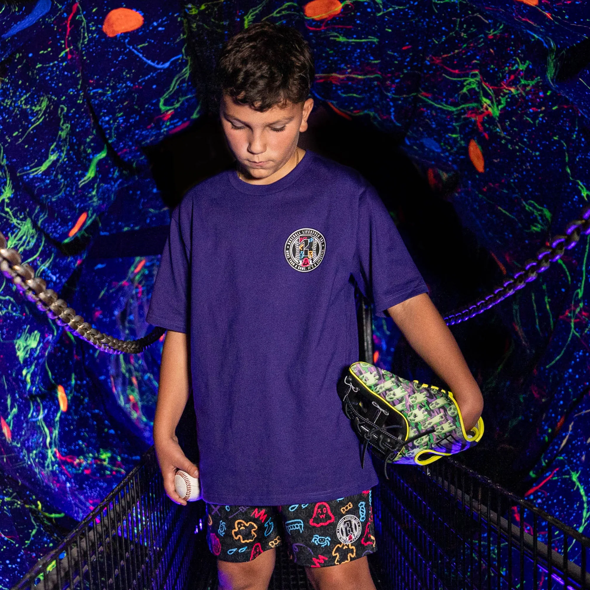 Baseball, but make it haunted. The Established Youth Tee - Spooky SZN flips our classic script logo into a neon glow of ghosts, bats, and bones - spooky season stitched right into the game we love. From the dugout to the candy run, it’s built for players who swing for the fences and live for October chills. Baseball Lifestyle 101 never ghosts the game.